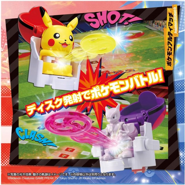 コレクショントイ( フィギュア・完成品 ) ディスクを発射してバトル&ゲット&わざトレーニング! トレーナーになりきってポケモンの世界を体感できる究極のシューティングホビーだ! ポケモンアルティマッチにピカチュウのスタートボックスが登場! はじめてでも扱いやすい基本のバランスタイプで、 プレイシートが付属しているからバトルに備えて特訓しよう! 表情のシールは好きなものを選べるぞ! ■ポケモンアルティマッチ遊び方 ポケモンアルティマッチはポケモン・ユニットパーツ・ディスク・ボールからなるポケモン型のホビーだ! 背中のトリガーを押し込むとディスクが発射するぞ。 ①ポケモンバトル スタジアムでディスクを撃ち合おう! 相手のヒットポイントに当てたらボールが閉じて勝敗が決まるぞ! ※スタジアムは別売りです ②ポケモンゲット ボールに付属のターゲットを入れてディスクを発射! ヒットポイントに当たればボールが閉じてポケモンゲットだ! MSシリーズのモンコレを使っても遊べるよ。 ※サイズによってはゲットできないモンコレもあります ※本商品にはモンコレは含まれません ③わざトレーニング 付属のターゲットを並べてディスクを発射! バトルに勝つためのわざに磨きをかけろ! 商品内容 ピカチュウ(1)、ユニットパーツ(バランス)(1)、モンスターボール(1)、ディスク(10)、ターゲット台紙(4)、ターゲット台座(2)、シール(1)、取扱説明書(1)、プレイシート(1) (C)Nintendo・Creatures・GAME FREAK・TV Tokyo・ShoPro・JR Kikaku (C)Pokemon (タカラトミー ウェブサイトより)
