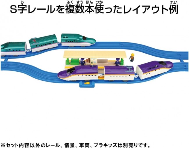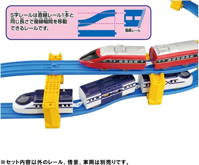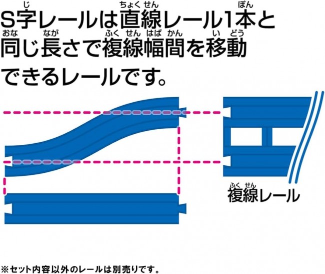 鉄道模型用 レイアウト用品・アクセサリーパーツ 直線レール1本と同じ長さで、複線幅間をゆるやかにカーブし走行できます。 直線レール1本と同じ長さで、複線幅間をゆるやかにカーブし走行することができるよ! 商品内容 S字レール(4) (C) TOMY