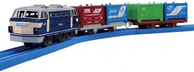 コンテナ車は別売りの「F-01 7000形コンテナ」「F-05 30Aコンテナ」「F-10 19Gコンテナ」や3両編成(別売)の「S-25 EH500金太郎」「S-52 EH200形電気機関車」のコンテナと積み替え遊びができます。