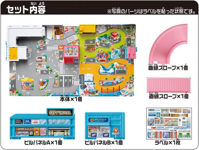 バックを開くと大きなバスタウンが出現! スイッチを押すと観光バスや循環バスに関連した音声が流れ、まち・うみ・やまにお出かけできます。 パトカーや救急車、信号、クラクションの音を出し、トミカを使ってマップの道路建物で遊びましょう! トミカ交通バス本社にトミカを出庫すると、整備士が洗車を開始! (1)マップ内の建物のガイドを沢山してくれる音声や、整備士の声、パトカーや救急車のサイレンなどの音声が、マップに合わせて遊びを盛り上げてくれます。 (2)まち・うみ・やまのボタンを押すと楽しいメロディが流れます! (3)マップには立体交差になった駅前繁華街や広々とした郊外や山や海など、様々な情景を表現。 トミカを使ったドライブ遊びが充実しています。 (4)バッグを左右に開くとそのまま商品が展開して遊べます。 しまう時もマップを左右から閉じてロックするだけの簡単仕様です。 ※トミカ(ミニカー)は別売りです。 【セット内容】本体(1),ビルパネルA(1),ビルパネルB(1),曲線スロープ(1),直線スロープ(1),ラベルシート(1) (C) TOMY 単4形アルカリ乾電池2本使用(電池は別売です。)