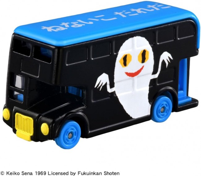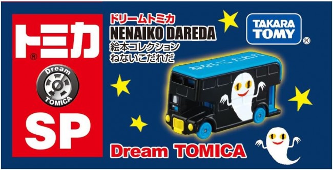 コレクショントイ( 乗用車・完成品 ) ドリームトミカに「ねないこだれだ」のラッピングバスが登場! 絵本の表紙や、印象的なシーンを両面にラッピングしたバスです。 今絵本を読んでいる人も、昔読んでいた人も 「ねないこだれだ」の世界を楽しめる一台です。 パッケージサイズ: W78×H41×D39mm 対象年齢: 3歳~ 商品内容 本体(1) (C)TOMY (C) Keiko Sena 1969 Licensed by Fukuinkan Shoten (タカラトミーモールウェブサイトより)