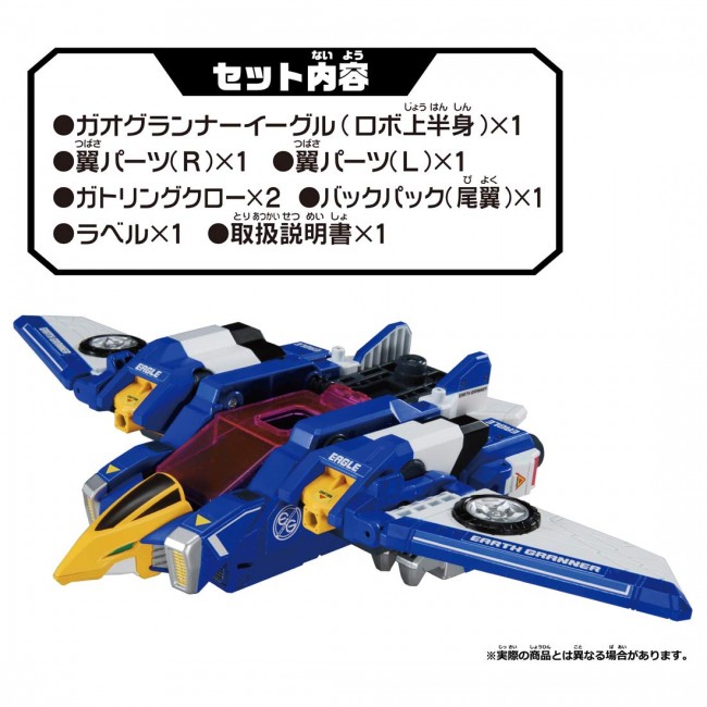 【セット内容】ガオグランナーイーグル(ロボ上半身)(1),翼パーツ(R)(1),翼パーツ(L)(1),ガトリングクロー(2),バックパック(尾翼)(1),ラベル(1),取扱説明書(1)
