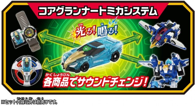 主人公クウガが、グランナーK(ケー)スクリューウェーブ(波のエナジーを纏ったヒーロー)にタイプチェンジするために使用するコアグランナートミカ!