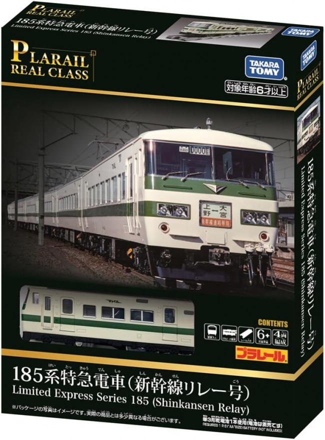 鉄道模型(電動・レール式 等) 細部までこだわった造形・塗装を施した、より”リアル”なプラレール『プラレール リアルクラス』から 『185系特急電車(新幹線リレー号)』が登場。 「飾る楽しみ」と「走らせる楽しみ」その両方を目指し、これまでに培った技術やノウハウを結集し、 細部までこだわった、より”リアル”なプラレール、『プラレール リアルクラス』。 今弾は『185系特急電車(新幹線リレー号)』が登場。 ■185系特急電車(新幹線リレー号)がモデル ■4両編成仕様 ■JNRマーク・グリーンカーマークは印刷済み ■靴ずり・ドアレールは印刷済み ■ヘッドマークシールは「新幹線連絡専用」、「谷川・白根・あかぎ・そよかぜ・新雪・シュプール上越号・ 特急・急行・普通・臨時・団体・回送・試運転・エル特急踊り子」、「踊り子・急行伊豆・湘南ライナー・はまかいじ・臨時特急・臨時快速」が付属 ■国鉄特急シンボルマーク、タイフォンカバー、クーラー、パンタグラフ、 車体内部シートなどリアルな造形・塗装などで表現 ■リアル直線レール3本同梱 すぐに飾ることが可能 ■プラレール規格で別売りの通常のレールで拡張可能 商品内容 185系特急電車(新幹線リレー号)1編成(4両)(1)、クーラー(ハイタイプ)(4)、クーラー(ロータイプ)(4)、パンタグラフ(ハイタイプ)(1)、リアル直線レール(3)、ヘッドマークシール(1)、部品注文書(1) (C)TOMY JR東日本商品化許諾済 (タカラトミー ウェブサイトより)