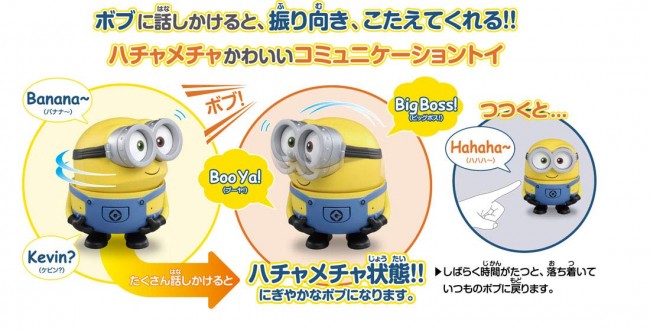手のひらサイズのかわいいミニオンのボブが、おしゃべりしてくれるコミュニケーショントイ。