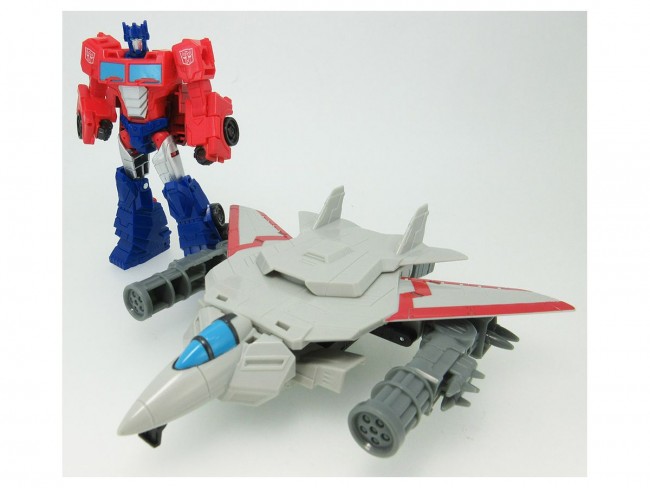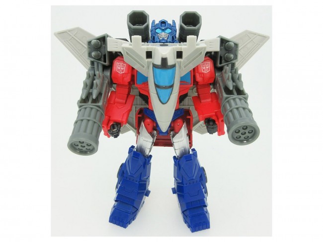 トラックからロボットに変形するオプティマスプライムにジェットウイングタイプのアーマービークルが合体パワーアップ。