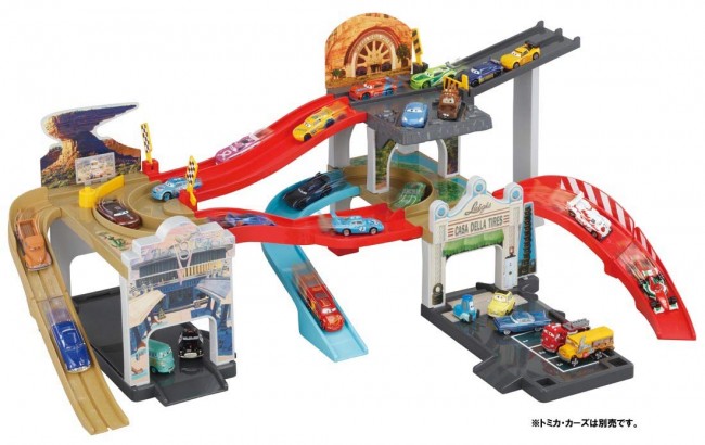 最大20台のカーズ トミカを連続発進、大迫力のロングコースであそぼう!