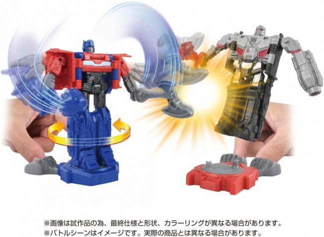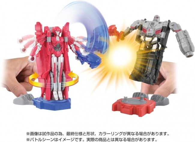 新作フルCGアニメ映画『トランスフォーマー/ONE』のキャラクター達が玩具になって登場! 台座に乗せてスイングバトル!サイバトロンラッシュバトルシリーズ! 『トランスフォーマー/ONE』で活躍するオプティマスプライム、メガトロン、エリータ-1がサイバトロンラッシュバトルで登場! ビークルからロボットへの変形はもちろん、ロボットモードのキャラクターに武器を持たせて専用台座にセットし、指で操作することで回転しながら武器を振り回してバトルさせることが可能! 繰り返し何度も遊びたくなる商品です。 全てのキャラクターに装備させられる武器と台座が付属。 ※他のサイバトロンラッシュバトルシリーズと組み合わせて遊ぶことが可能です。 【セット内容】オプティマスプライム本体(1),メガトロン本体(1),エリータ-1本体(1),台座(2),武器(4) (C) TOMY. (C) 2024 Paramount Pictures Corporation. All Rights Reserved. TM & (R) denote Japan Trademarks.