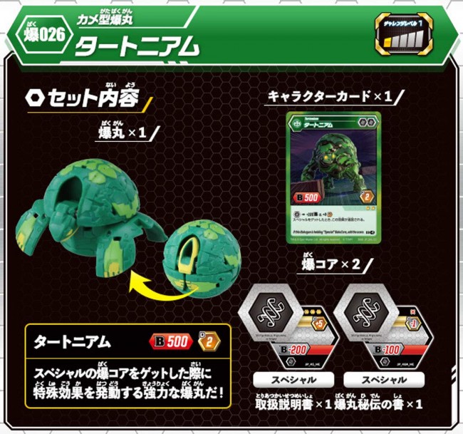 [セット内容]爆丸(1),キャラクターカード(1),爆コア(2),取扱説明書(A4)(1),爆丸秘伝の書(A5)(1)
