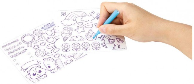 付属のドールに専用ペンで「おえかき」すると、お水でおとしてくり返しおえかきすることができます。