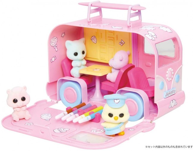 お気に入りのドールができたら、付属のバスに貼るシールにもおえかきしてオリジナルのラッピングバスをつくろう!
