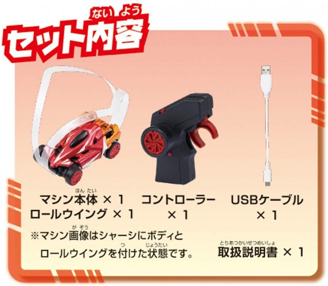 [セット内容]シャーシ(1),ボディ(1),ロールウイング(1),コントローラー(1),充電ケーブル(1),取扱説明書(1)