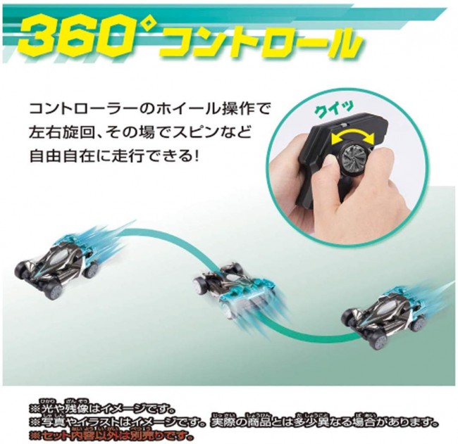 コントローラーのトリガーとホイールでスピード調整や360度コントロールが可能です。