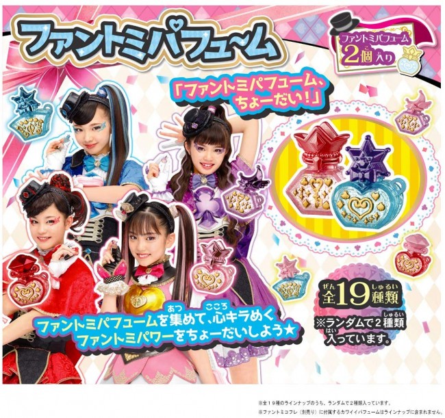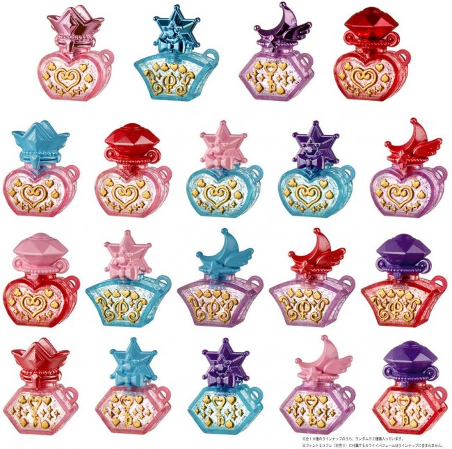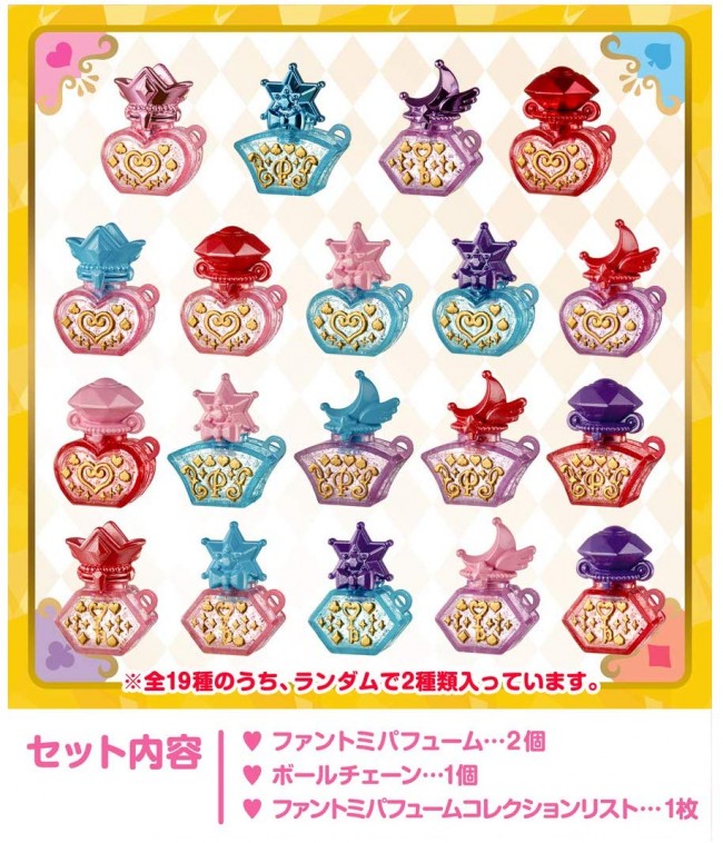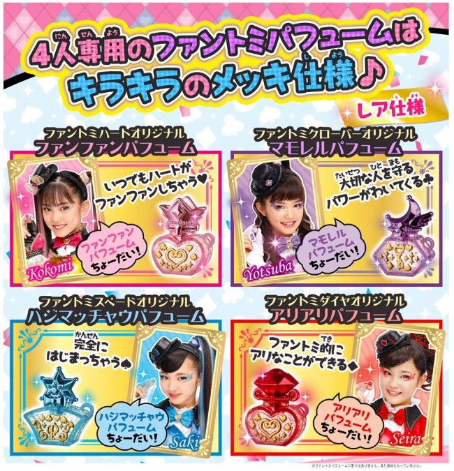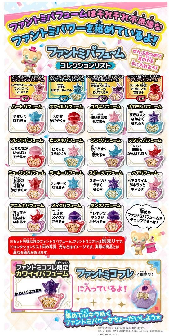 かわいくていっぱい集めたくなる香水ビンのようなデザインで、それぞれに不思議なファントミパワーが宿っている設定がついています。