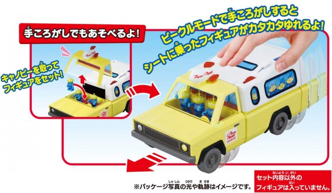 キャラクターフィギュアとトミカがセットになった『ドリームトミカ ライドオン』シリーズからトイ・ストーリー トミカと一緒に遊べる、ピザショップに変身するビックビークルが登場!!