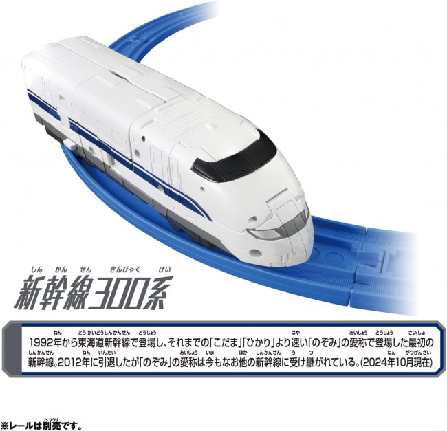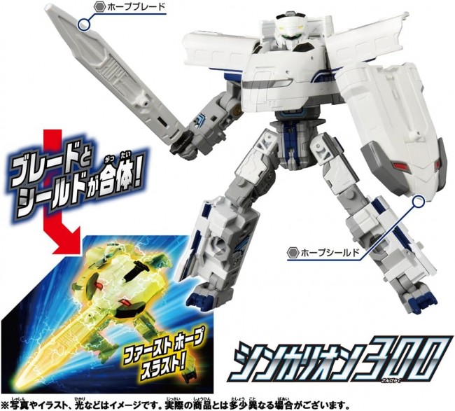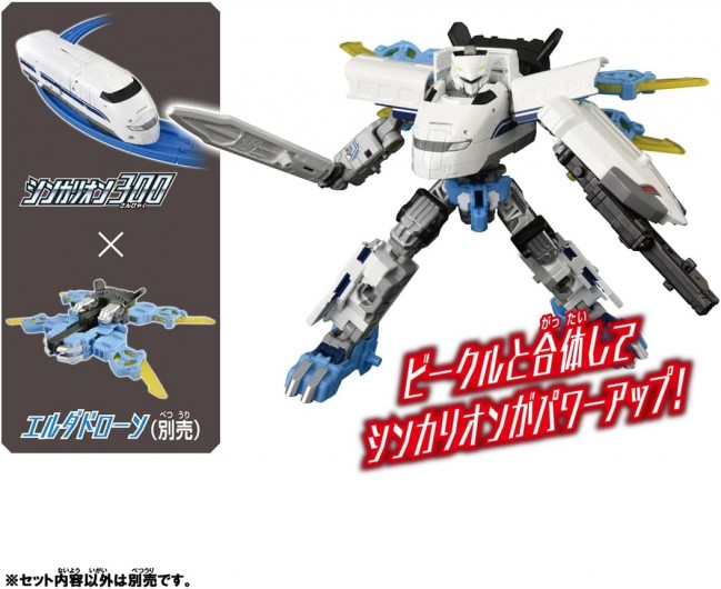 コレクショントイ( SF/アニメキャラクター・完成品 ) 「シンカリオン チェンジ ザ ワールド」から『シンカリオン 300』が登場! 1両編成で、新幹線からロボットに変形! ・シンカリオン 300 1両編成で、新幹線からロボットに変形! 大型の剣「ホープブレード」、大型の盾「ホープシールド」を装備。 さらに、ブレードとシールドが合体し、必殺の「ファーストホープスラスト」を放つ。 エルダビークルとの「ビークル合体」機能を搭載! 別売りのエルダビークル商品と合体して、シンカリオンがパワーアップ! 更にシンカリオンを3体集めることで「3両合体」が可能! シンカリオン、エルダビークルを組み合わせキミだけの最強合体フォームを作り出せ! ※レール、電動走行車両は入っていません。 パッケージサイズ: W200×H220×D60mm 対象年齢: 3歳~ 商品内容 シンカリオン300(1) ホープシールド(1) 合体パーツ(1) ラベル(1) 取扱説明書(1) 台車(1) ホープブレード(1) ブレードパーツ(1) (C)TOMY (C)プロジェクト シンカリオン・JR-HECWK/ERDA・TX (タカラトミーモールウェブサイトより)