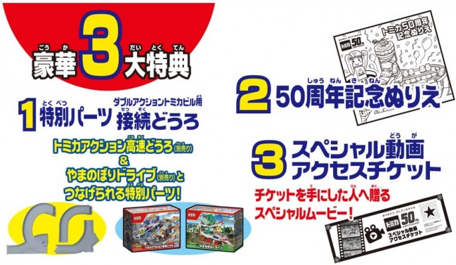 豪華3大特典がついた「トミカ50周年記念特別仕様」で登場!