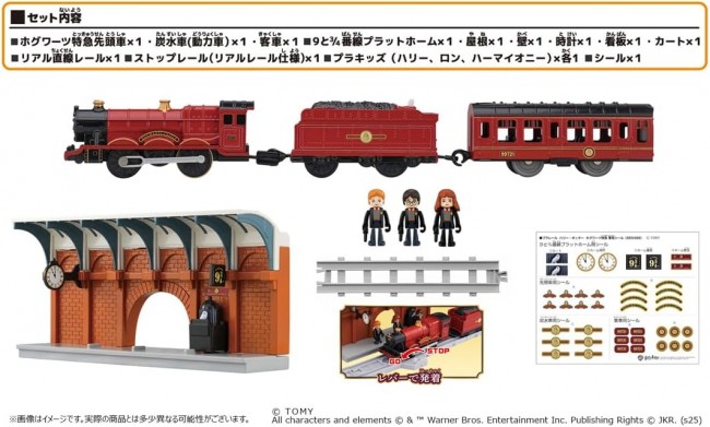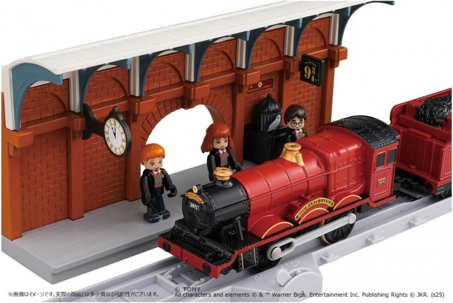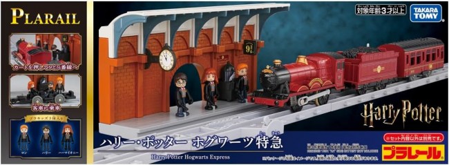 映画『ハリー・ポッター』のホグワーツ特急がプラレールで登場です。 ホグワーツ特急に9と3/4番線プラットホーム、プラキッズ3体、リアル直線レール、ストップレール(リアルレール仕様)付きのセットです。 ■映画『ハリー・ポッター』シリーズとのコラボレーション商品 ■先頭車、炭水車(動力車)、客車の3両編成で、それぞれ連結・切り離し可能 ■客車のカバーは取り外しができ、プラキッズの載せ降ろし遊びが可能 ■ハリー、ロン、ハーマイオニーのプラキッズ3体付属 ■9と3/4番線プラットホームには、ヘドウィグの鳥籠が載ったカートが付属 ■プラットホームにはプラキッズ3体を立たせることが可能 ■1スピード・スイッチOFFで手転がし遊びが可能 ※セット内容以外のレールは付属しません。 ※レールは別売りの「R-01直線レール」等とも繋げることができます。 【セット内容】ホグワーツ特急先頭車(1),炭水車(動力車)(1),客車(1),9と3/4番線プラットホーム(1),屋根(1),壁(1),時計(1),看板(1),カート(1),プラキッズ ハリー(1),プラキッズ ハーマイオニー(1),プラキッズ ロン(1),リアル直線レール(1),ストップレール(リアルレール仕様)(1),シール(1) (C) TOMY All characters and elements (C) & TM Warner Bros. Entertainment Inc. WB SHIELD: (C) & TM WBEI. Publishing Rights (C) JKR. (s25) 単3形乾電池1本使用(電池は別売です。)