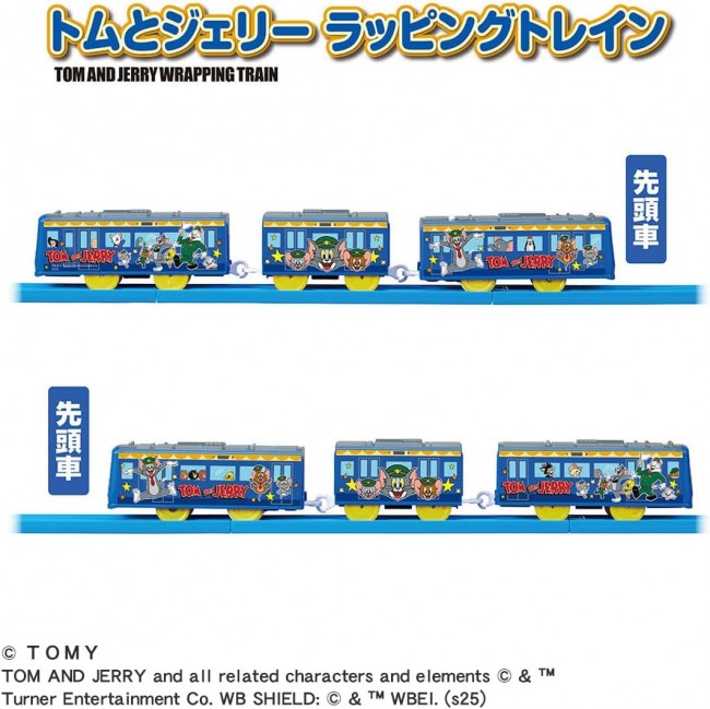 トムとジェリーがデザインされたプラレールオリジナルのラッピングトレインが登場! 「トム」や「ジェリー」、人気のキャラクター達が車両にたくさん描かれた楽しいデザインです。 ■プラレールのオリジナルラッピングトレイン ■3両編成でそれぞれ連結・切り離し可能 ■1スピードで電動走行、スイッチOFFで手転がし遊びが可能 ■一部の連結部品は収納式のため、遊ぶ際に引き出して連結してください ※レールは付属しません。 ※車両はESシリーズです。既存の車両商品とは一部仕様が異なります。 組み合わせによっては本来の遊びができない場合があります。 【セット内容】トムとジェリー ラッピングトレイン(3両)(1) (C) TOMY TOM AND JERRY and all related characters and elements (C) & TM Turner Entertainment Co. WB SHIELD: (C) & TM WBEI. (s25) 単3形アルカリ乾電池1本使用(電池は別売です。) ※電池はアルカリ乾電池をご使用ください。 ※誤飲防止のため、電池ケース蓋に「ネジ止め式」を採用しています。