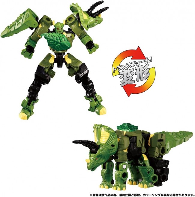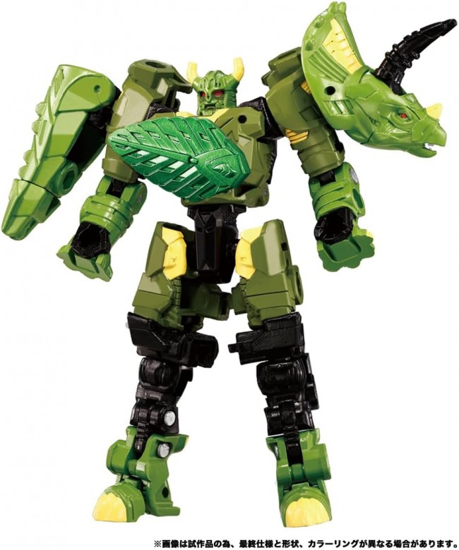 WEB配信アニメ『トランスフォーマー ワイルドキング』のキャラクター達が玩具になって登場! 『トランスフォーマー ワイルドキング』で活躍するトリケラトプス型トランスフォーマーのエナジービースト「リーフバック」が登場! 「リーフバック」は自然の力であるグラスエナジーを持つトランスフォーマーだ! ロボットからビースト、ビーストからロボットへ変形! 別売りのエナジーマスターと合体(ワイルドッキング)させることができる! キミだけのワイルドッキングを楽しもう! 【セット内容】リーフバック本体(1),トリケラトプス頭部パーツ(1),トリケラトプス尻尾パーツ(1),グラスエナジー(1),取扱説明書(1) (C) TOMY