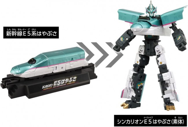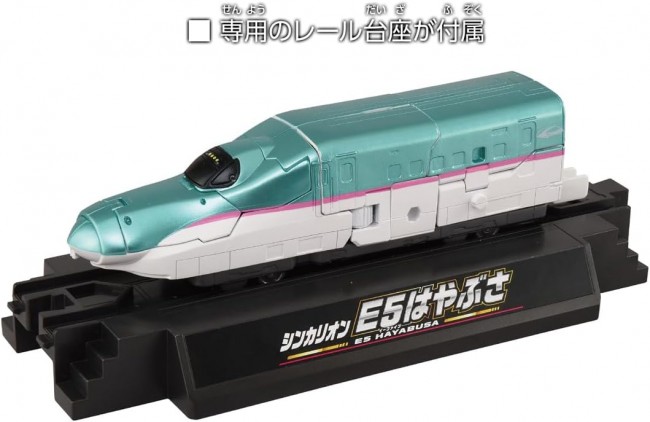 シンカリオン10周年を記念し、『シンカリオン チェンジ ザ ワールド』の変形機構をもとにした、アニメ第1期の「シンカリオン E5はやぶさ」が登場! ■10周年記念 シンカリオン E5はやぶさ ・1両編成で、新幹線からロボットに変形! ・アーマーパーツとの合体で、アニメ第1期「シンカリオン E5はやぶさ」を再現! レール台座が付属し、車両状態で飾ることができる。 さらに付属のアーマーパーツはレール台座に格納可能! 別売の『シンカリオン チェンジ ザ ワールド』の「E5はやぶさ」と組み合わせれば、歴代の「E5はやぶさ」3体による夢の3両合体が可能に…! 『シンカリオン チェンジ ザ ワールド』の変形機構をもとにしているため、今までの「ビークル合体」や「3両合体」も可能! シンカリオン、エルダビークルを組み合わせキミだけの最強合体フォームを作り出せ! ※レール、電動走行車両は入っていません。 【セット内容】シンカリオン E5はやぶさ(素体)(1),レール台座(1),フロントアーマー(1),サイドアーマー(A,B)(1),レッグアーマー(A,B)(1),カイサツソード(1),ウイング(A,B)(1),ヘッドギア(1),合体パーツ(1),台車(1),ラベル(1),取扱説明書(1) (C) TOMY (C)プロジェクト シンカリオン・JR-HECWK/超進化研究所・TBS