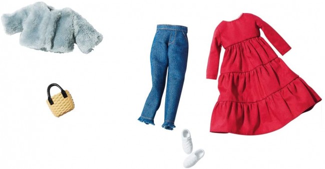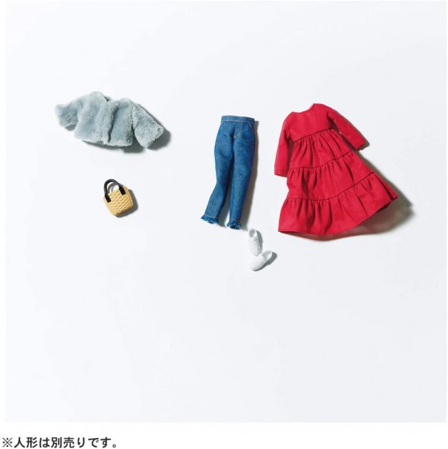 【セット内容】ワンピース(1),ボアジャケット(1),デニムパンツ(1),クツ(1),バスケットバッグ(1),コーディネートブック(1),※人形別売