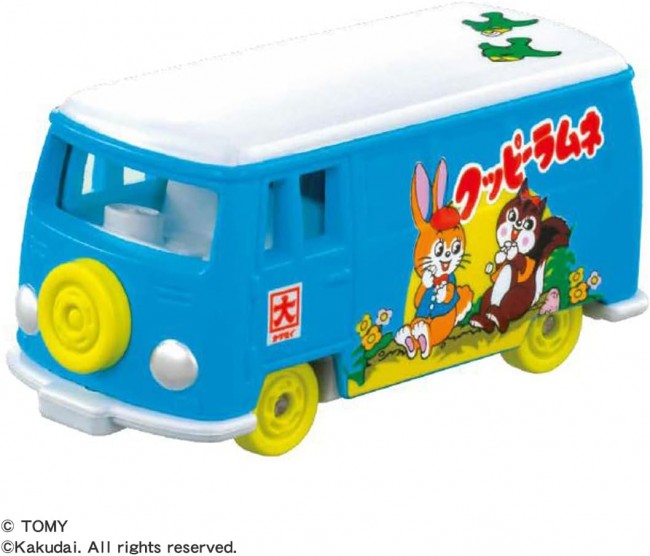 ドリームトミカに「クッピーラムネ」が登場! 「クッピーラムネ」の印象的なデザインをラッピングしたバン型タイプのトミカです。 <アクション> サスペンション (C) TOMY (C)Kakudai. All rights reserved.