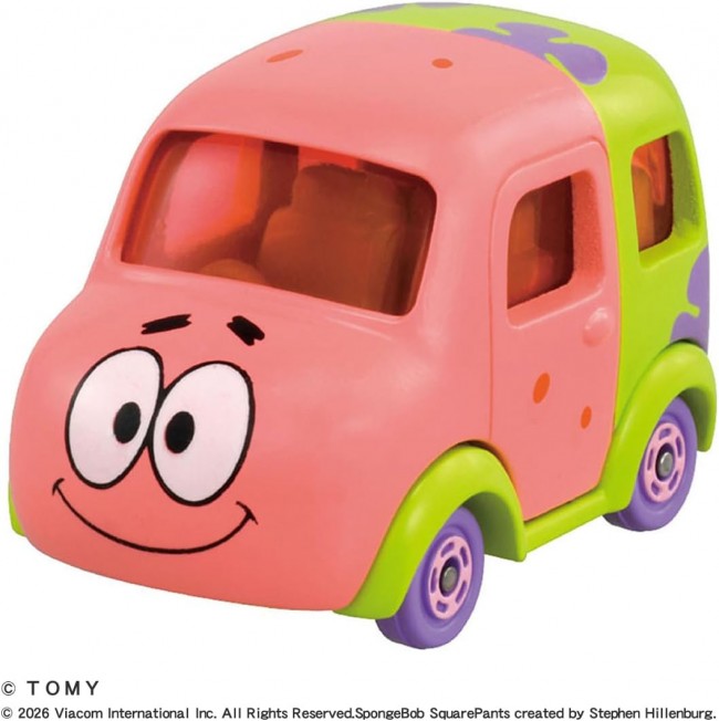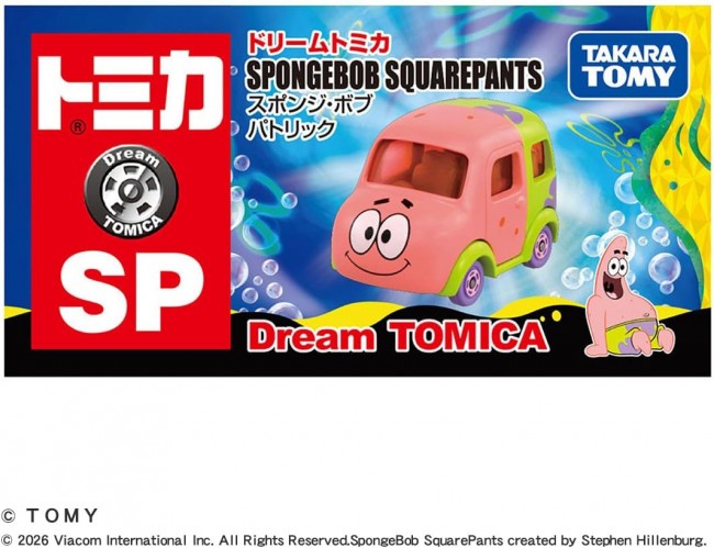 ドリームトミカに「スポンジ・ボブ」のパトリックが登場! 「スポンジ・ボブ」の「パトリック」がトミカになった! リア部分にはリアタイヤの代わりに"カーニバーガー"が付いています。 <アクション>サスペンション (C) TOMY (C) 2026 Viacom International Inc. All Rights Reserved. Nickelodeon, SpongeBob SquarePants and all related titles, logos and characters are trademarks of Viacom International Inc. SpongeBob SquarePants created by Stephen Hillenburg.