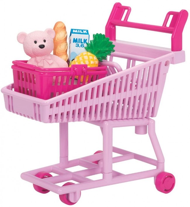 ほんものみたいなピンクで可愛いショッピングカート!カゴと小物もついて楽しくショッピング!