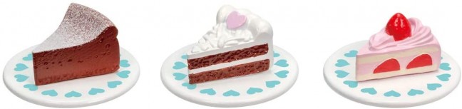 ケーキとお皿が3セット付いています。