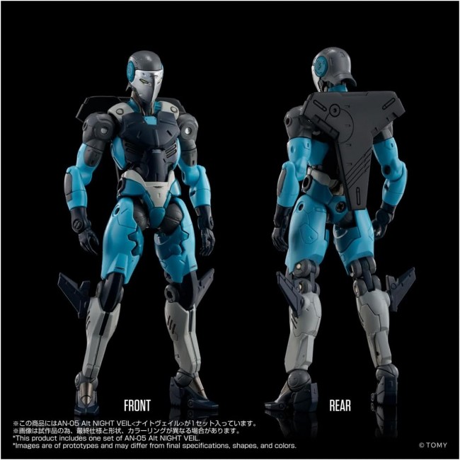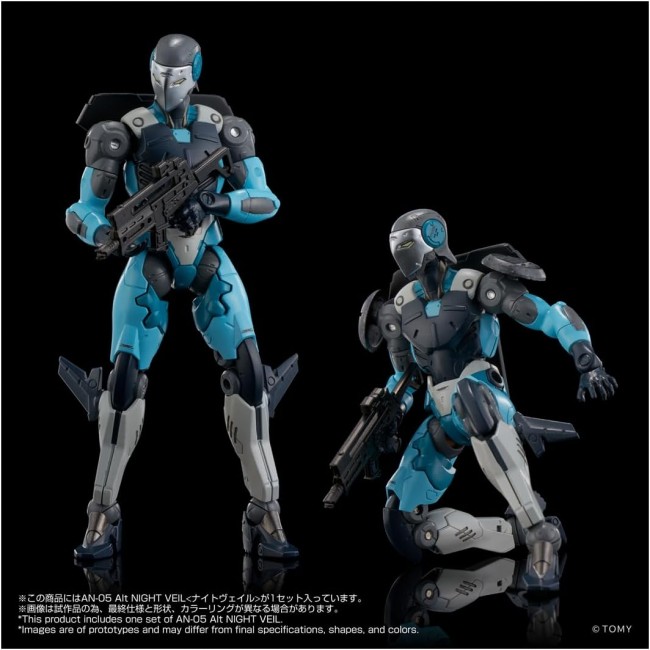 アクションフィギュア(アニメ/SFキャラクター) AN-05 Alt NIGHT VEIL<ナイトヴェイル> 完成品アクションフィギュアシリーズ「オルタードナノ」 フィギュアデザインを新川洋司氏、メカニックデザインを荒牧伸志氏が手掛ける、全高約10cmに凝縮されたフィギュアとメカニズムの連動により、新たな遊びが発現する。 VASCO製、企業統治国家連合体がカスタムを施したAlt<ナイトヴェイル>。 強化された脚部での機動力向上が図られている。 また脚部等に装備可能なスタビライザーで安定感のある戦闘が可能となった。 全高約10cmの完成品アクションフィギュア。 肘や足首をはじめとした専用構造の関節により広い可動を実現。 PDW・メダリオン・アーマー・スタビライザー・3種の交換用両手首パーツが付属。 内容物 本体(1), 交換用手首パーツ一式(1), 武装パーツ(1), 武器パーツ(1), 装備パーツ一式(1), 肩パーツ一式(1), 取扱説明書(1) (C) TOMY