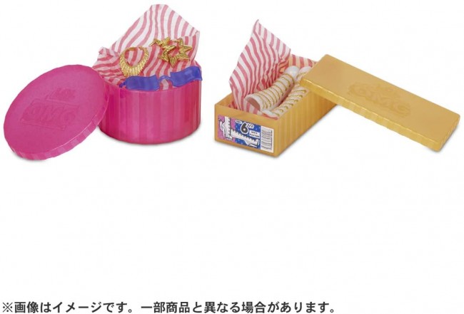 【セット内容】OMGドール(インナー着用)(1),イヤリング(1),コスチューム(1),ハンガー(2),ガーメントバッグ(2),バッグ(1),アクセサリー(2),ハットボックス(1),ドールスタンド(1),シューズ(1),シューズボックス(1),ブラシ(1),紙小物(1),スタンドの使い方(1),ミラーシート(1)
