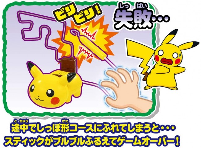 途中でしっぽ形コースにふれてしまうと、スティックがブルブルふるえてゲームオーバーに!!