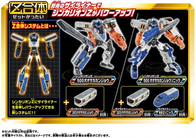 テレビアニメ「新幹線変形ロボシンカリオンZ」から『シンカリオンZ500こだま』がプラレールで登場! 3両編成仕様で、新幹線からロボットに変形! ザイライナーと合体できる「Z合体」システムを搭載! 別売りのザイライナー商品と「Z合体」して、パワーアップしよう! ザイライナーを組み合わせて、君だけの最強Z合体を作り出せ! ※レール、電動走行車両は入っていません。 【セット内容】シンカリオンZ 500こだま(3両編成)(1),武器(1),取扱説明書(1),ラベル(1) (c) TOMY (c)プロジェクト シンカリオン・JR-HECWK/超進化研究所Z・TX