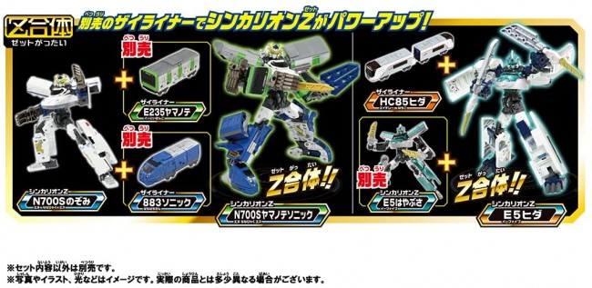 【セット内容】シンカリオンZ N700S のぞみ(3両編成)(1),ザイライナー HC85 ヒダ(2両編成)(1),武器(2),取扱説明書(1),ラベル(1)