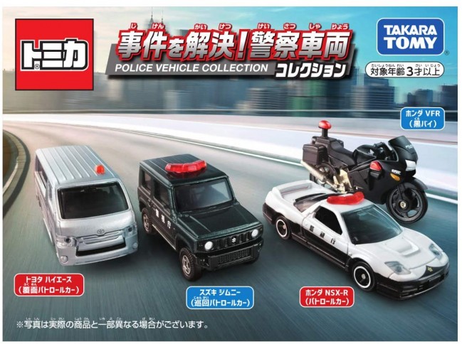 ホンダ NSX-R(パトロールカー)(1)、スズキ ジムニー(巡回パトロールカー)(1)、トヨタ ハイエース(覆面パトロールカー)(1)、ホンダ VFR(黒バイ)(1)