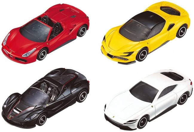 フェラーリのオリジナルカラーリングの4台セットがトミカギフトから新登場! 488 Spider、SF90 Stradale、LaFerrari Aperta、Ferrari Romaの4台セット。 【セット内容】488 Spider(1),SF90 Stradale(1),LaFerrari Aperta(1),Ferrari Roma(1) (c) TOMY