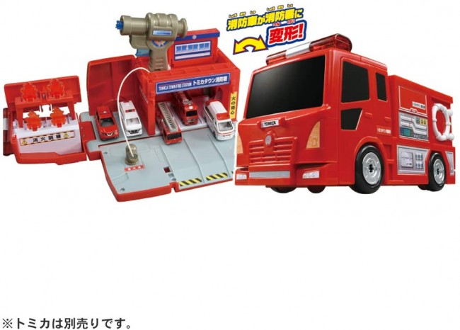 大きな消防車がおしごと遊びいっぱいの消防署に変形!