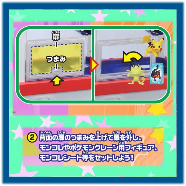 "ボタン操作でアームを動かして景品(モンコレ)を手に入れるクレーンゲーム大人気のクレーンゲームがポケモンセンターデザインで登場! モンコレで遊べます。