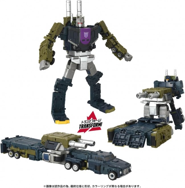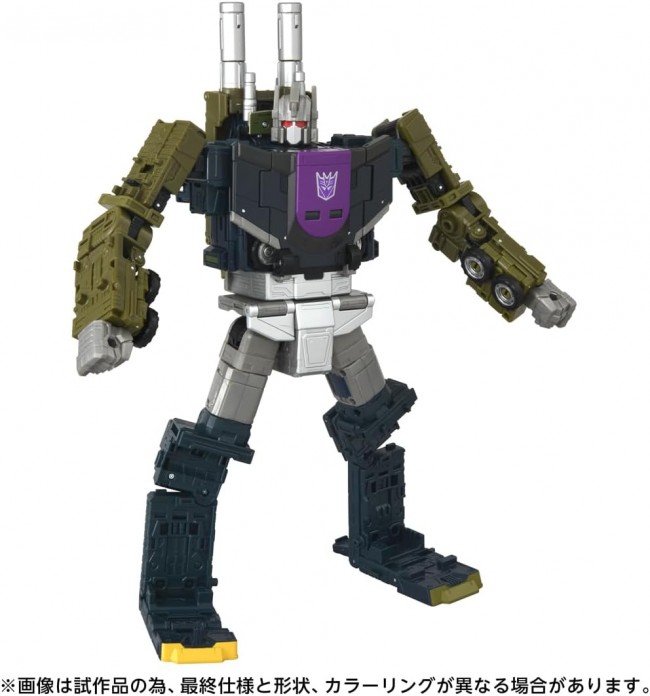 アクションフィギュア(アニメ/SFキャラクター) トランスフォーマーのアニメ/コミックなどから商品化を行う「ジェネレーションズ」から 「エイジ・オブ・ザ・プライム」が展開! シリーズの中核はトランスフォーマーの始祖となる「13人のプライム」に焦点を当てており、 今まで商品化されることが少なかった伝説のプライム達が展開されていきます。 オンスロートは、兵器車両に変形するディセプティコンの攻撃部隊コンバッティコンのリーダーでコンバットトレーラーに変形する攻撃参謀です。 また、オンスロートを中心に5体のコンバッティコン(AOTP-34 オンスロート以外は別売り)と合体することで巨大兵士ブルーティカスが完成(オンスロートはボディに合体)します。 また、オンスロートのトレーラー部分は巨大な砲台モードに変形、デッキ部分には仲間のコンバッティコンを乗せることができます。 内容物 オンスロート本体(1), トレーラー本体(1), 砲台パーツ(1), 砲塔パーツ(2), 取扱説明書(1) (C) TOMY