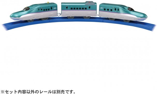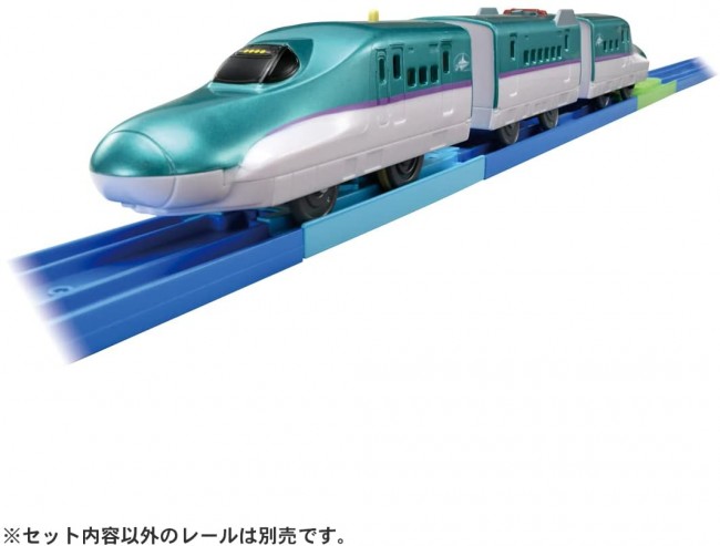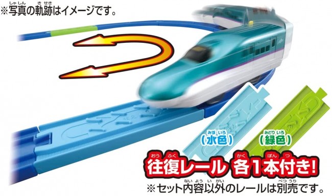 JR北海道「H5系新幹線」が好きなところを行ったり来たりできる往復シャーシ搭載仕様で登場です。 ■JR北海道「H5系新幹線はやぶさ」がモデル ■往復シャーシ搭載 ■往復レール(水色・緑色)各1本入り ■往復シャーシには一部ボディをのせかえて遊ぶことが可能(詳細はホームページで案内予定です) ■3両編成でそれぞれ連結・切り離し可能 ■1スピード・スイッチOFFで手転がし遊び可能 ■プラ列車カード付 ※セット内容以外のレールは別売です 【セット内容】車両本体(1),往復レール(水色)(1),往復レール(緑色)(1),プラ列車カード(1),部品注文書(1) (c) TOMY JR北海道商品化許諾済 単3形乾電池1本使用(電池は別売です。) ※誤飲防止のため、電池ケース蓋に「ネジ止め式」を採用しています。