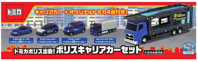 トミカタウンで活躍するトミカポリスパトロールカーたちがポリスキャリアカーとセットになって登場!
