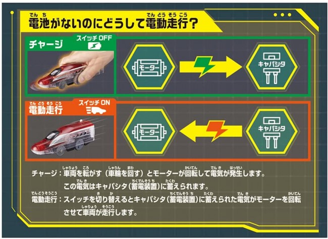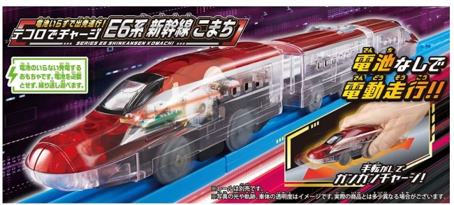 プラレール初!※ 電池いらずで電動走行する特別な車両がクリア仕様の「E6系新幹線こまち」で登場! 手転がしでガンガンチャージ! スイッチONでしっかり電動走行します。 ■JR東日本の「E6系新幹線こまち」がモデル ■3両編成でそれぞれ連結・切り離し可能 ■レールは付属しません。 【セット内容】車両本体(1),部品注文書(1), ※当社調べ(1959年5月~2021年4月発行「プラレールカタログ」の調査による) (c) TOMY JR東日本商品化許諾済