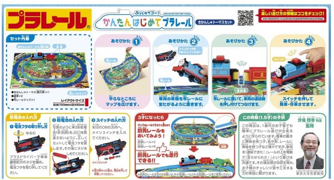 かわいくてかんたん!1.5歳から遊べるプラレール! 布レールマップだから、ひろげればすぐに円形のレールができて、おかたづけも簡単! 汚れてしまったマップは手洗いも可能です! マップにはトーマスの楽しいなかまと英語が描かれていて、楽しく英語に触れられます! 【セット内容】きかんしゃトーマス(動力車)(1),貨車(2),布レールマップ(1)単3形乾電池1本使用(電池は別売です。) ※誤飲防止のため、電池ケース蓋に「ネジ止め式」を採用しています。