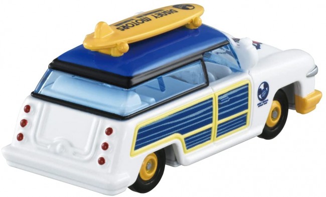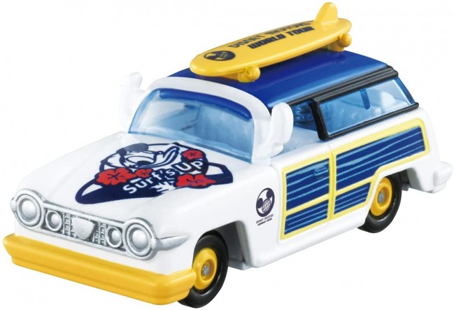世界旅行“ワールドツアー”をテーマにしたディズニーモータースが登場です! 南の島ではサーフボードを積んで海沿いドライブ! ドナルドダックらしく海の似合うカラーリングに。 【セット内容】本体(1) (c) Disney