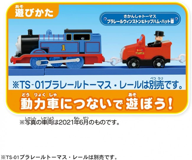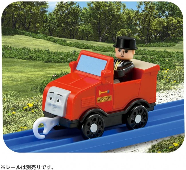 プラレールトーマスシリーズに手ころがしで遊べる「ウィンストン」が登場! トップハム・ハット卿のプラキッズを乗せて遊べるよ! 前に連結器がついているので、動力車(別売)に繋ぐことができます。 手転がしや、動力車との連結など、プラレールトーマスシリーズと遊ぼう! 【セット内容】プラレールウィンストン(1),トップハム・ハット卿(1),シール(1),部品注文書(1) (c) TOMY (c)2021 Gullane (Thomas) Limited. (c)2021 HIT Entertainment Limited.