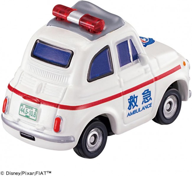 コレクショントイ( 乗用車・完成品 ) 日本の緊急車両をテーマにしたオリジナルシリーズのルイジがカーズ トミカに登場! ルイジが日本の救急車両のデザインになって登場! 狭い道路で活躍する救急車両をイメージしました。 ルーフには警光灯、ボンネットにはシリーズロゴをつけた一台です。 本作にはない、日本のオリジナルデザインです! 商品内容 本体(1) (C)Disney/Pixar;FIAT TM (タカラトミー ウェブサイトより)