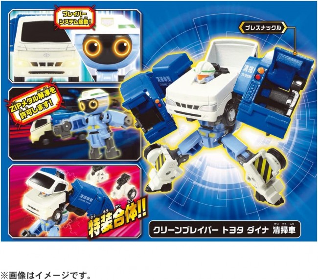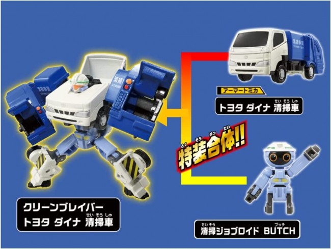 トミカから生まれた新たなヒーロー「トミカヒーローズ ジョブレイバー特装合体ロボ」から『クリーンブレイバー トヨタ ダイナ清掃車』が登場! アーマートミカ「トヨタ ダイナ清掃車」が清掃ジョブロイドと合体し、「クリーンブレイバー トヨタ ダイナ清掃車」になるぞ! 別売りのジョブレイバーたちと一緒に街を守ろう! ・清掃ジョブロイドはジョブレイバーシリーズの別商品に付属するアーマートミカとも合体可能 【セット内容】アーマートミカ(トヨタ ダイナ 清掃車)上半身パーツ(1),アーマートミカ(トヨタ ダイナ 清掃車)下半身パーツ(右)(1),アーマートミカ(トヨタ ダイナ 清掃車)下半身パーツ(左)(1),アーマートミカ(トヨタ ダイナ 清掃車)カバーパーツ(1),清掃ジョブロイド(1),ラベル(1),取扱説明書(1) (c) TOMY