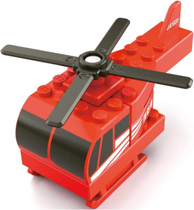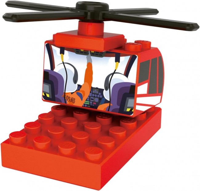 初めてでも簡単で、トミカやプラレールといっしょに遊べる楽しいブロックが登場! 消防ヘリコプターをキミの手で組み立てよう! ■商品内容(パーツ数/アクション) ・消防ヘリコプター(全6パーツ/ロータ回転) パーツ数が少ないので初めてでも簡単に遊ぶことができます。 一部パーツには機内が描かれていて、ブロック遊びを通して想像力を育みます。 【セット内容】消防ヘリコプター(全6パーツ)(1),ブロック完成図(1) (C) TOMY