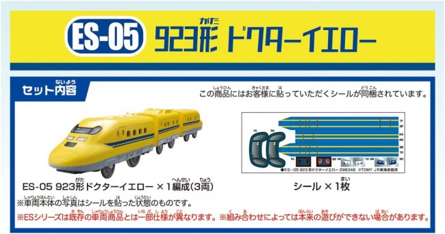 プラレールデビューにもピッタリ!基本の遊びが揃ったESシリーズに「923形ドクターイエロー」が登場! 電動走行と手転がしで遊ぶことができて、プラレールのレールや情景と一緒に遊べます。 ■923形ドクターイエローがモデル ■3両編成でそれぞれ連結・切り離し可能 ■1スピードで電動走行、スイッチOFFで手転がし遊びが可能 ■一部の連結部品は収納式のため、遊ぶ際に引き出して連結してください ■この商品にはお客様に貼っていただくシールが同梱されています ※レールは付属しません。 ※ESシリーズは既存の車両商品とは一部仕様が異なります。 組み合わせによっては本来の遊びができない場合があります。 【セット内容】車両本体(1),シール(1) (c) TOMY JR東海承認済 単3形アルカリ乾電池1本使用(電池は別売です。) ※電池はアルカリ乾電池をご使用ください。